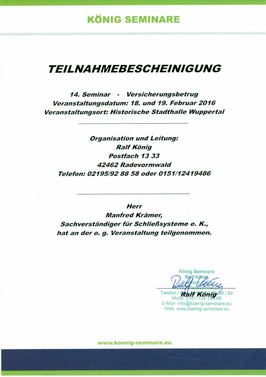 In seiner Eigenschaft als Sachverständiger für Schließsysteme ist Herr Manfred Krämer Ihr kompetenter Partner wenn es um Ihre Sicherheit geht. Sie besitzen bereits ein Sicherheitssystem und möchten es auf Alter und Sicherheit prüfen lassen? Sie tragen sich mit dem Gedanken, Ihr Eigentum zu sichern und so besser zu schützen?